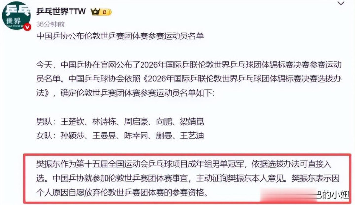 几天后,当中国乒协正式公布伦敦世乒赛团体赛名单。