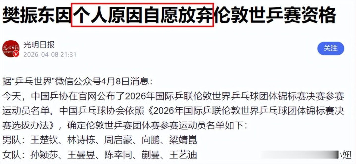 那么,樊振东自愿放弃的背后,究竟隐藏着怎样的真相?